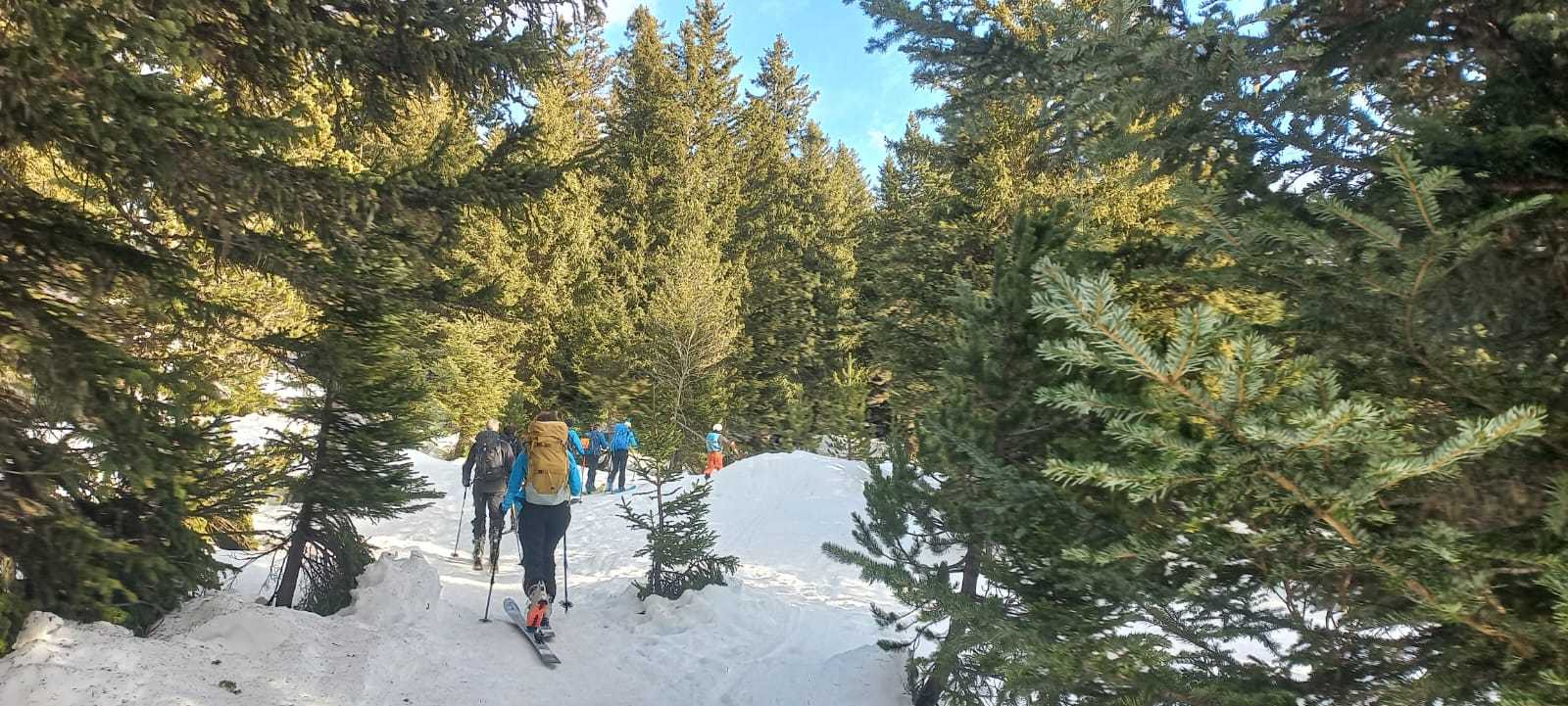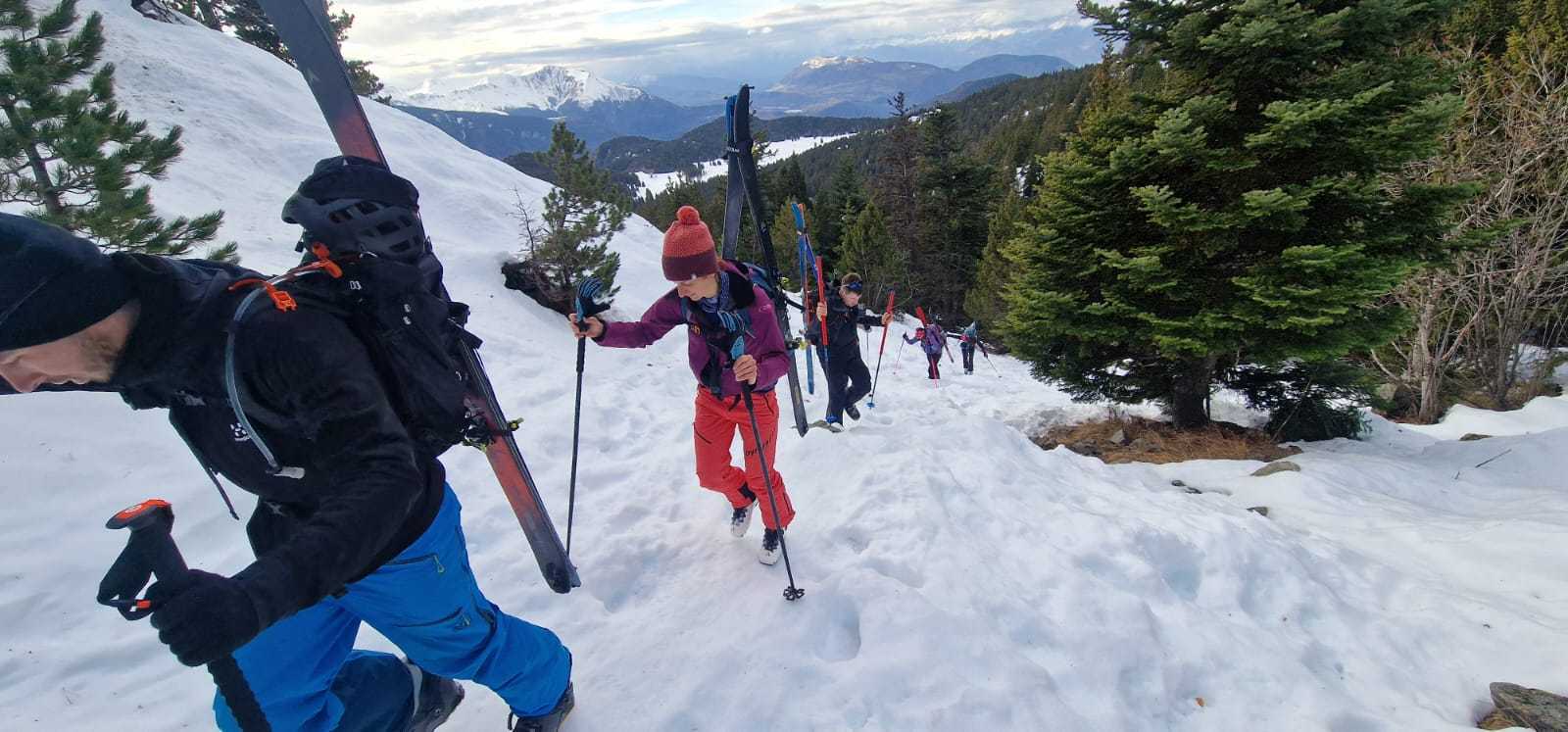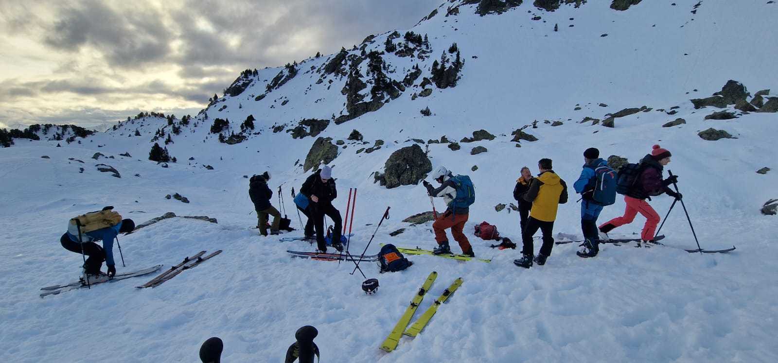 24 personnes pour peupler Chamrousse et s’entrainer ! découverte du ski de rando pour certains, itinéraires tout terrain, recherche de DVA (en sac ou sur volontaires), tout y était!