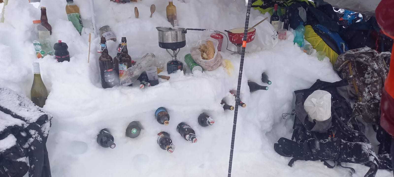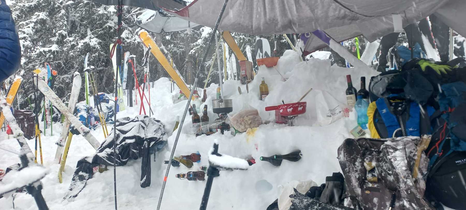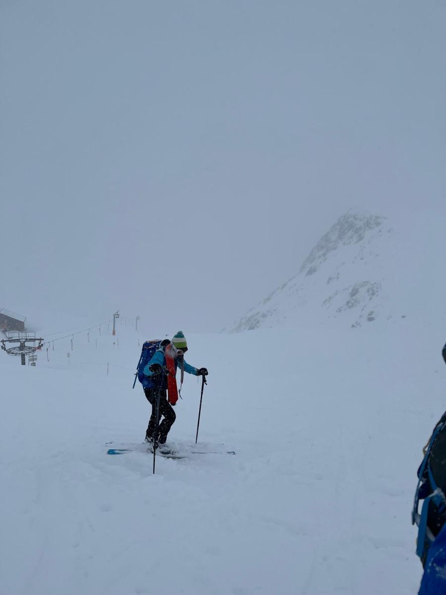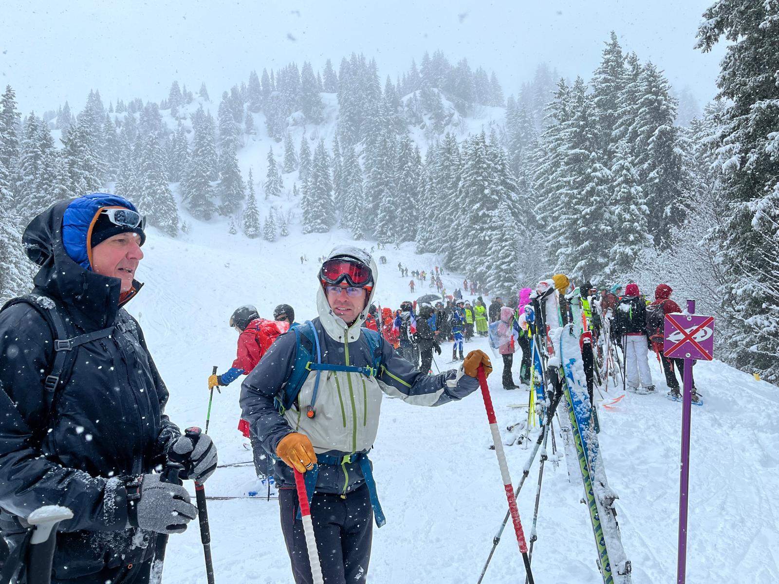 Neige continue, froid, peaux qui n’adhèrent plus, portage, couteaux, un surfeur qui disparaît, jour blanc…