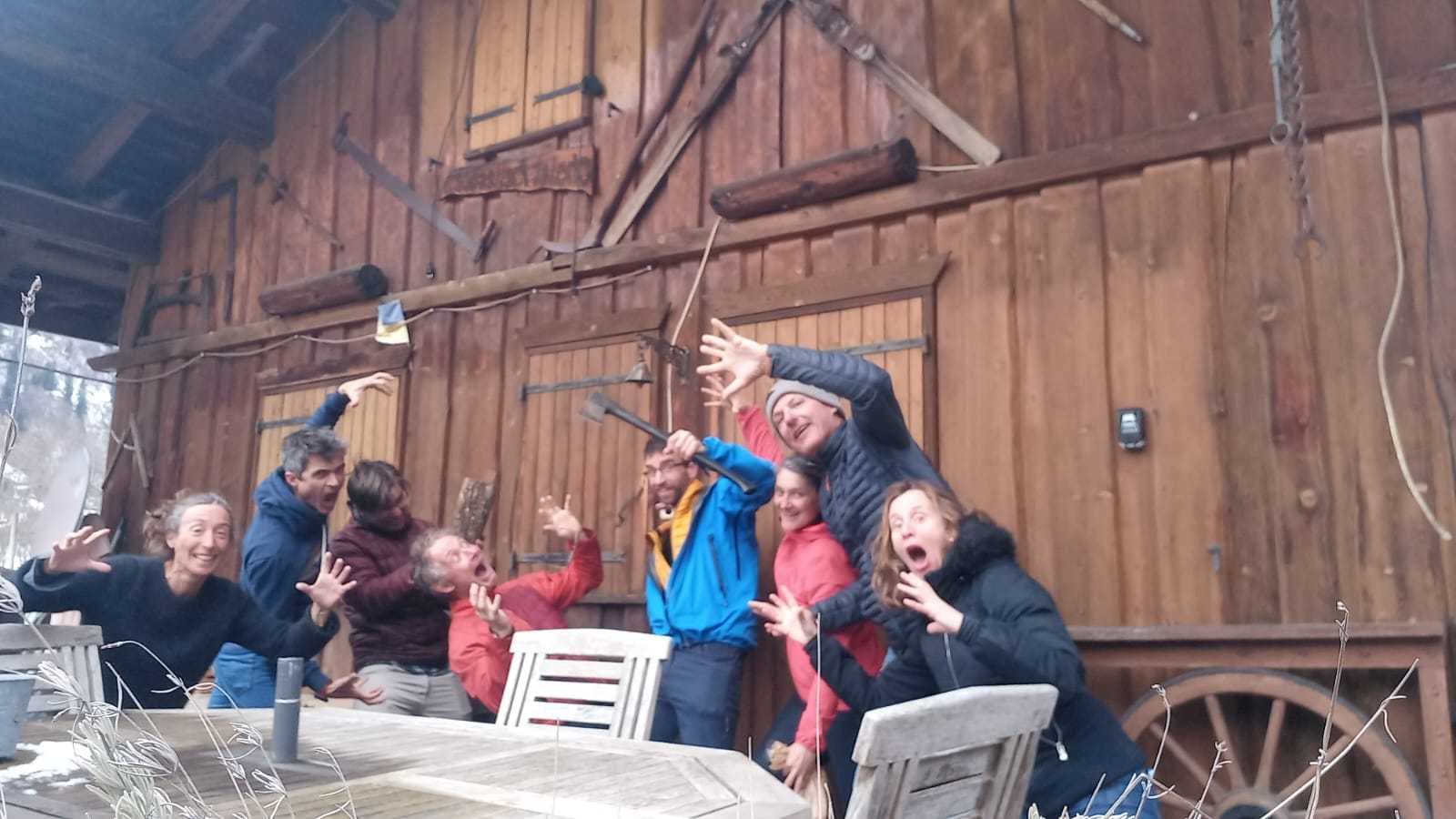 ⛷️Ils étaient 8 et ils sont arrivés 8 : Stéphanie, Delphine, Cécile, Christophe, Franck, Micka, Fab et Jérôme 🏂